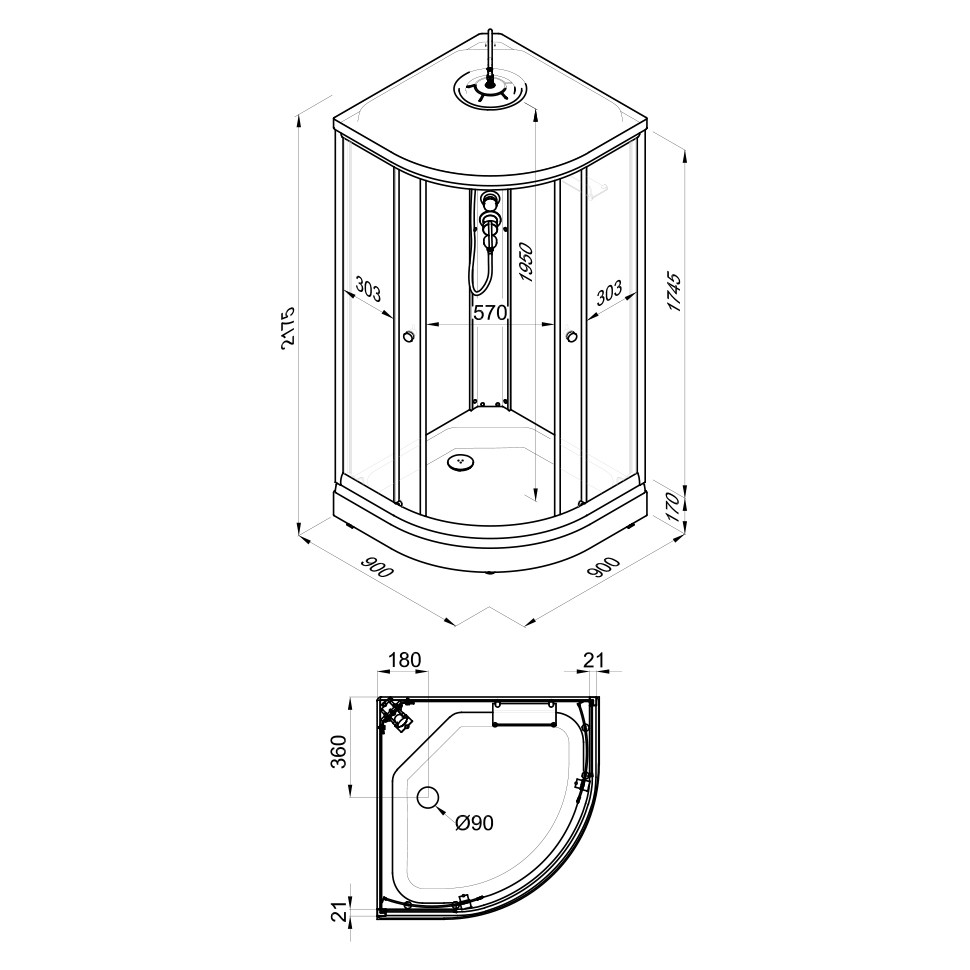 Низкий поддон высотой всего 170 мм обеспечивает удобство в использовании. Сифон душевой кабины диаметром 90 мм гарантирует быстрый и эффективный слив. Ширина дверного проема в 540 мм обеспечивает комфортный вход и выход.
