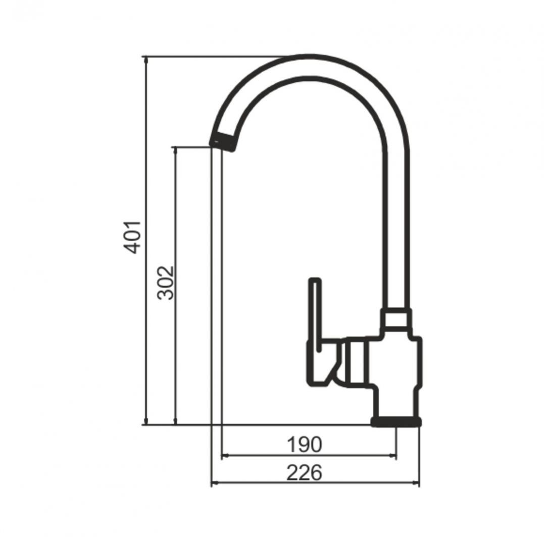 Излив: Поворотный из нерж. стали D 24, высота до аэратора 302мм., вынос 190мм.