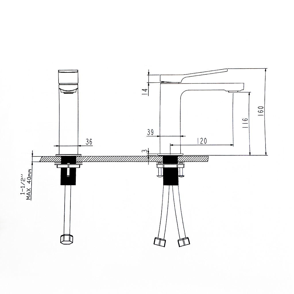 Смеситель прост и удобен в монтаже. Кран устанавливается на горизонтальную поверхность умывальника или столешницы толщиной 5-30 мм и крепится с помощью гайки, входящей в комплект. Диаметр установочного отверстия 30-40 мм.
